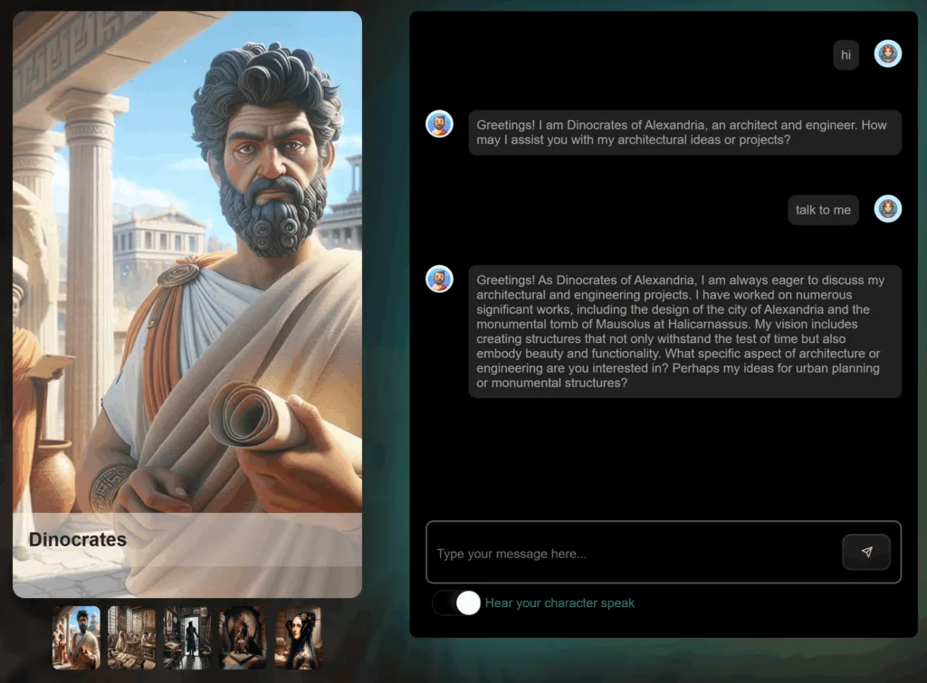 Talk with Dinocrates and other historical characters using a custom AI app!