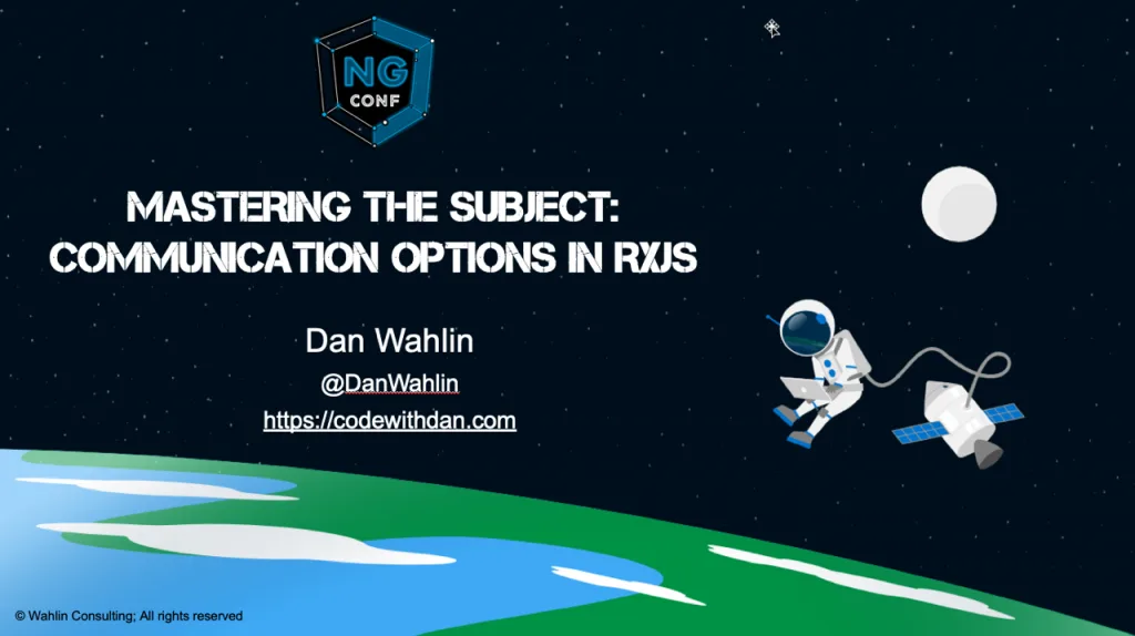 In addition to the workshop, I also gave a talk titled Mastering the Subject - Communication Options in RxJS. The talk introduced different RxJS subject options such as Subject, BehaviorSubject, ReplaySubject, and AsyncSubject and discussed patterns to communicate between different components in an application and even between services. I focused on Event Buses, Observable Services, and briefly mentioned my Observable Store state management solution (which provides a simple yet powerful way to add state management into any type of front-end project - Angular/React/Vue or anything else). You can watch the talk below.